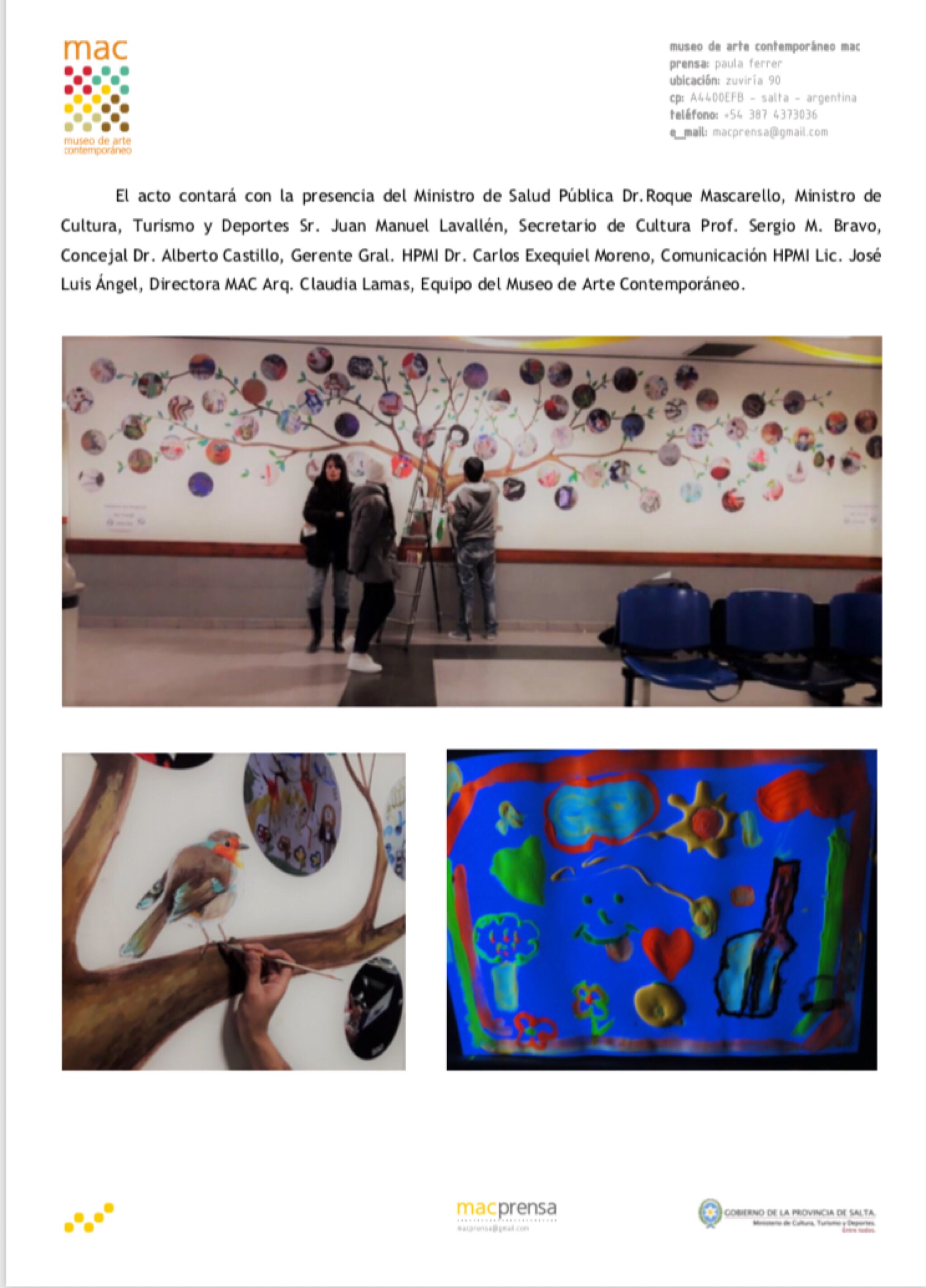 El Museo de Arte Contemporáneo de Salta inaugura el mural “Mac Mágico” en el Hospital Materno Infantil. Donde se expone el trabajo artístico de más de 80 niños oncológicos a través del proyecto A.C.T.U.A.R.